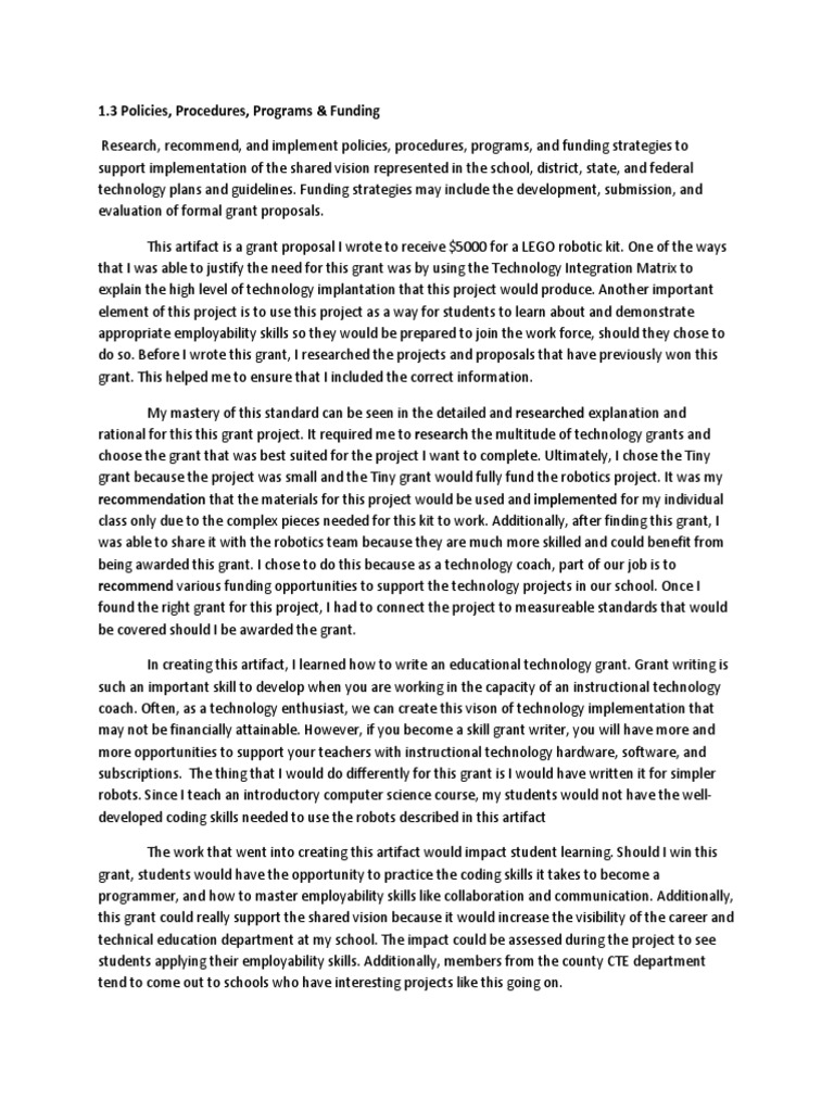 In creating this artifact, I learned how to write an educational technology grant. Grant writing is