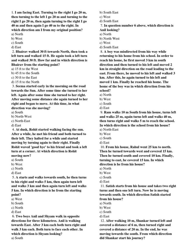 5. A starts and walks towards south, he then turns c) South