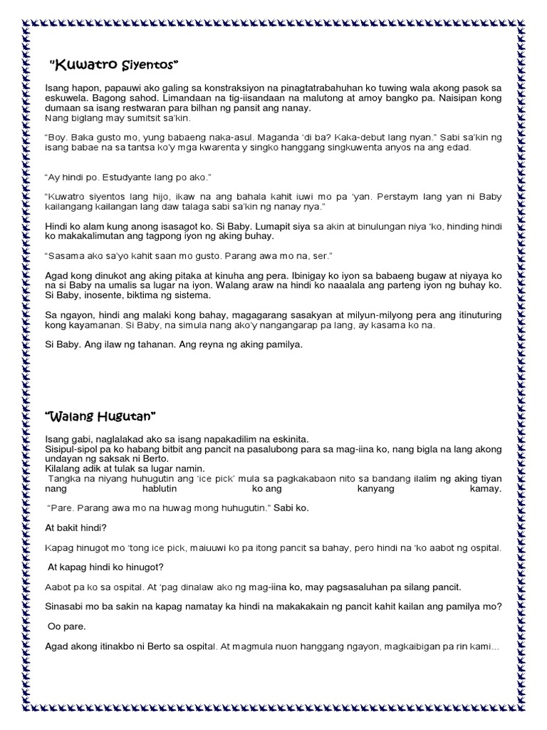 bumibili ng kanyang mga paninda. Magalang namang tumanggi ang mga tambay.