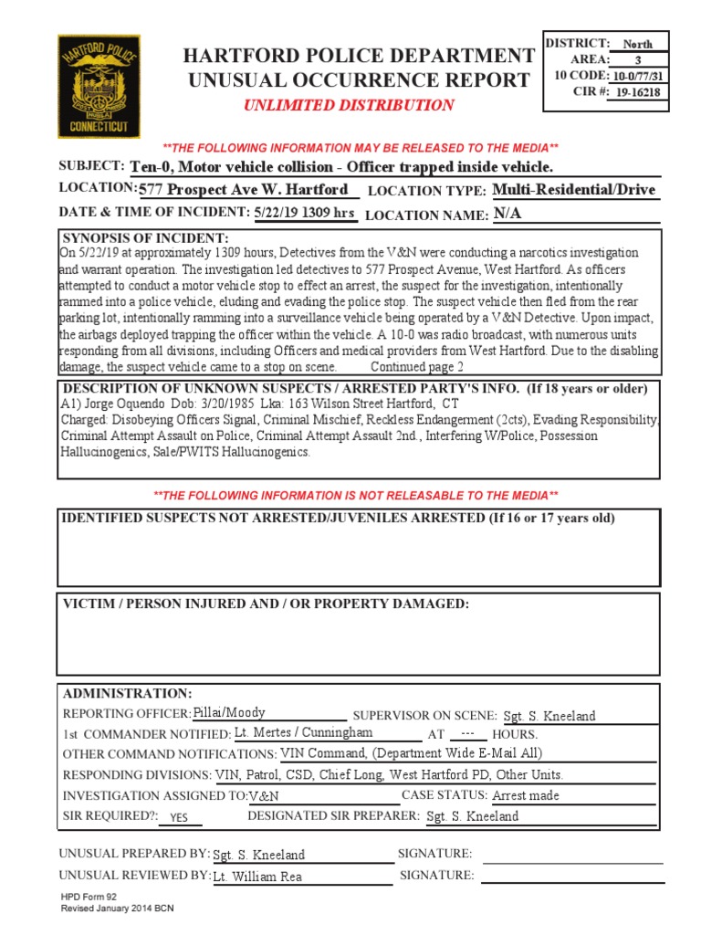 19-16218 Ten-Zero, Motor Vehicle Collision - Offcier Trapped
