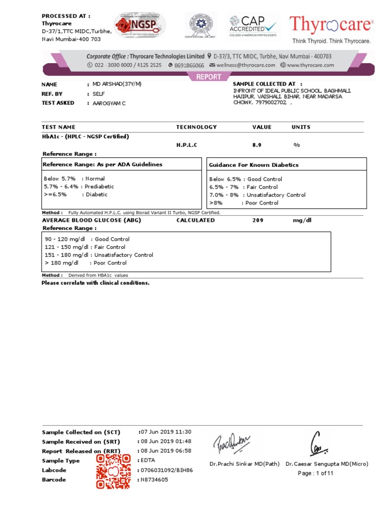NAME : MD ARSHAD(37Y/M) SAMPLE COLLECTED AT :