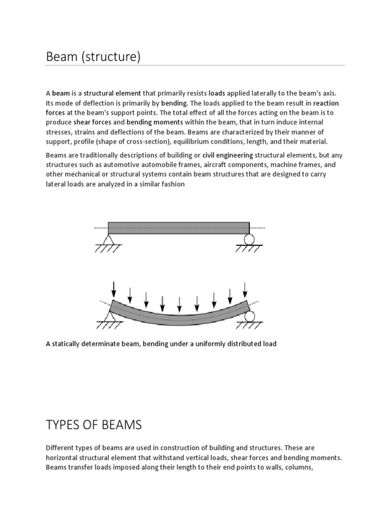 stresses, strains and deflections of the beam. Beams are characterized by their manner of