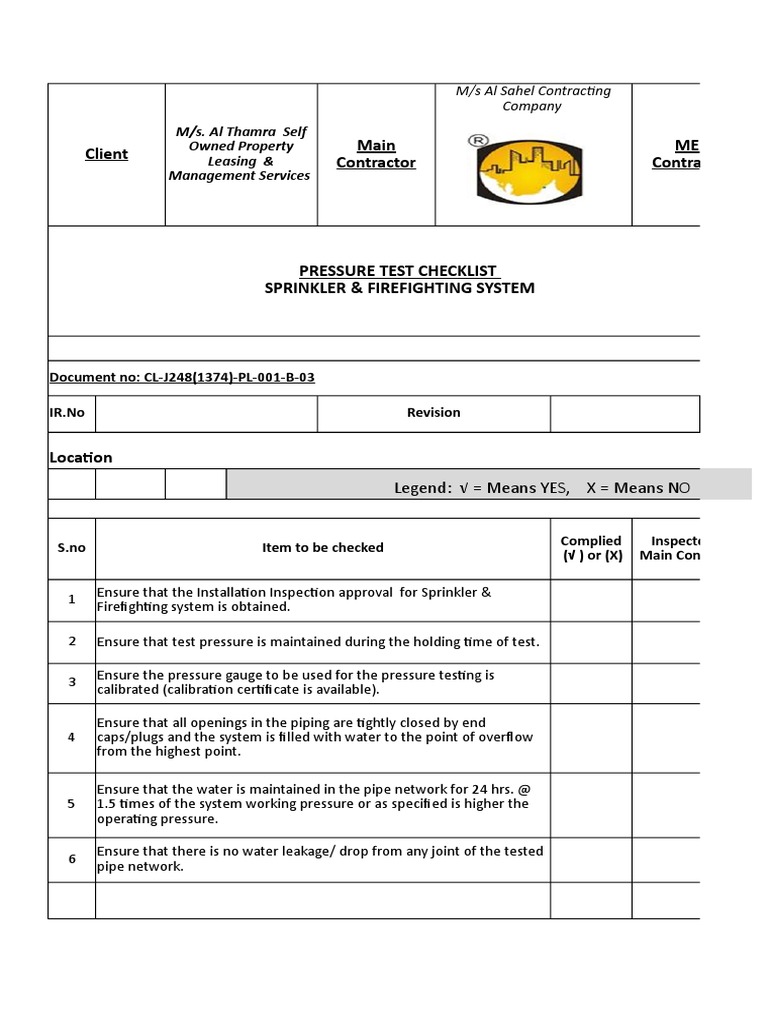 [Link] Item to be checked (√ ) or (X) Main Contractor