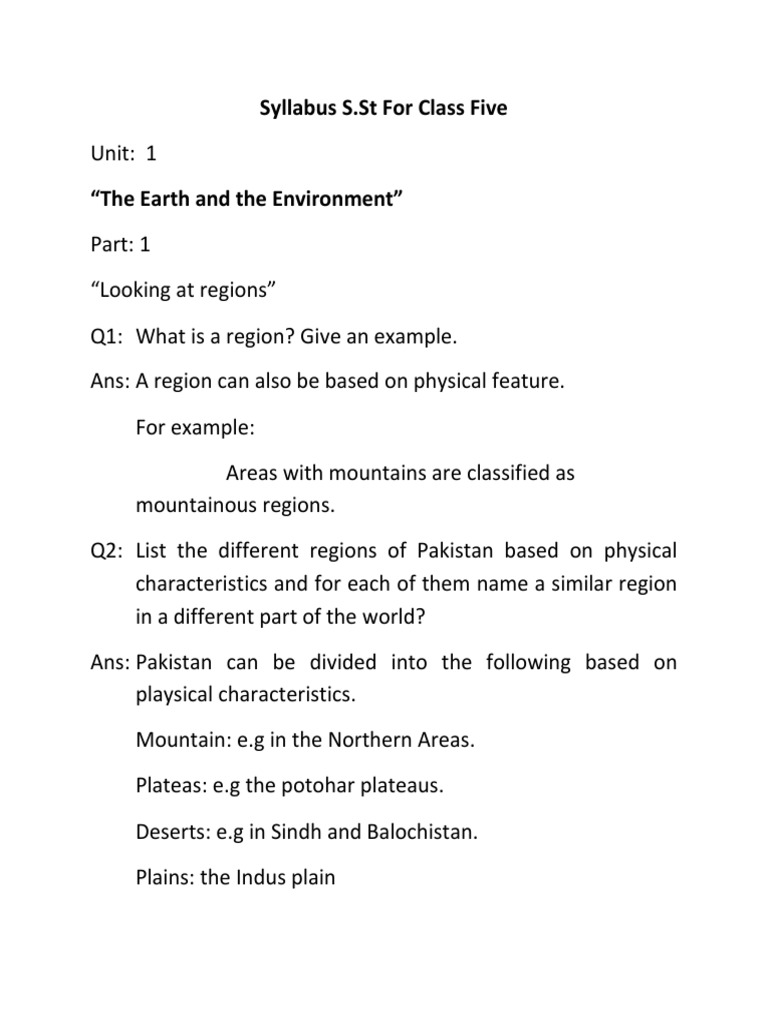 Q2: List the different regions of Pakistan based on physical