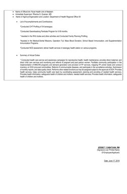 * Assisted in the RHU duties and other activities and Conducted Family Planning Profiling.