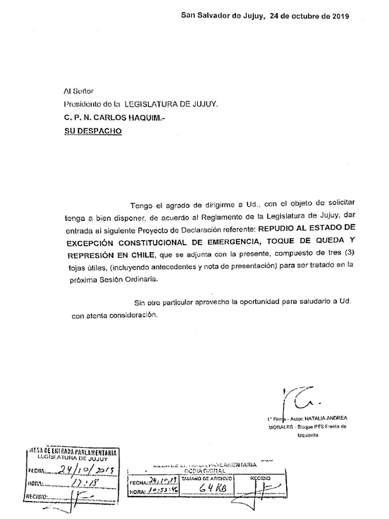 Rechazo al estado de emergencia y la represión en Chile - PTS-FIT Jujuy