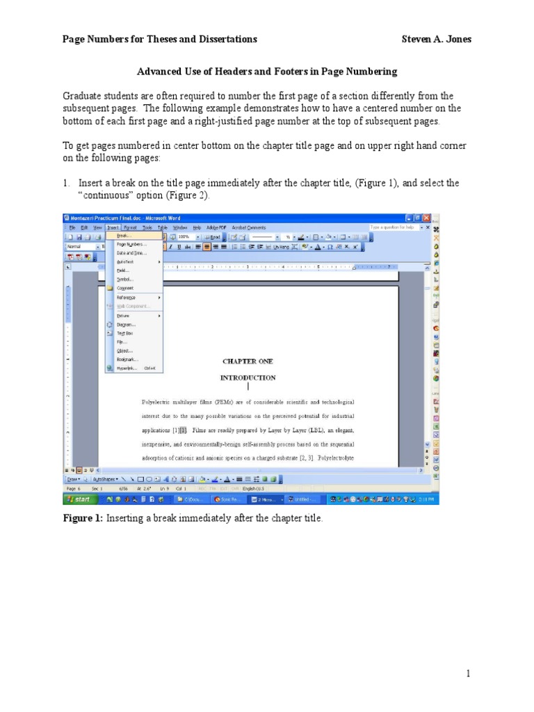1. Insert a break on the title page immediately after the chapter title, (Figure 1), and select the