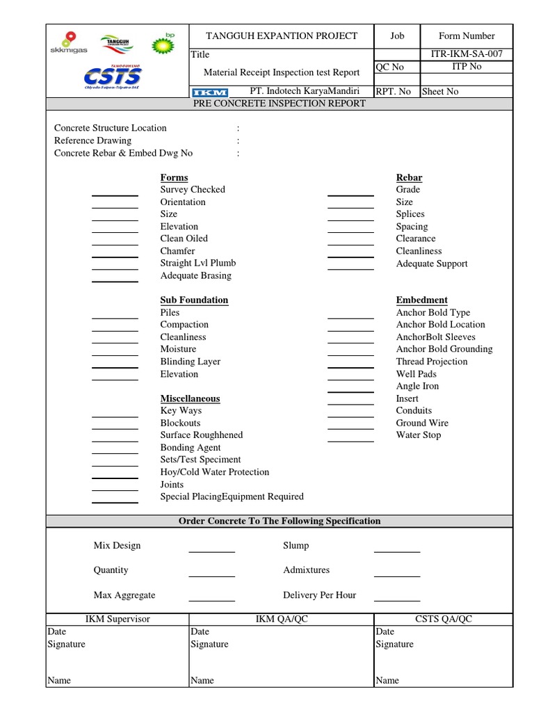 PRE CONCRETE INSPECTION REPORT