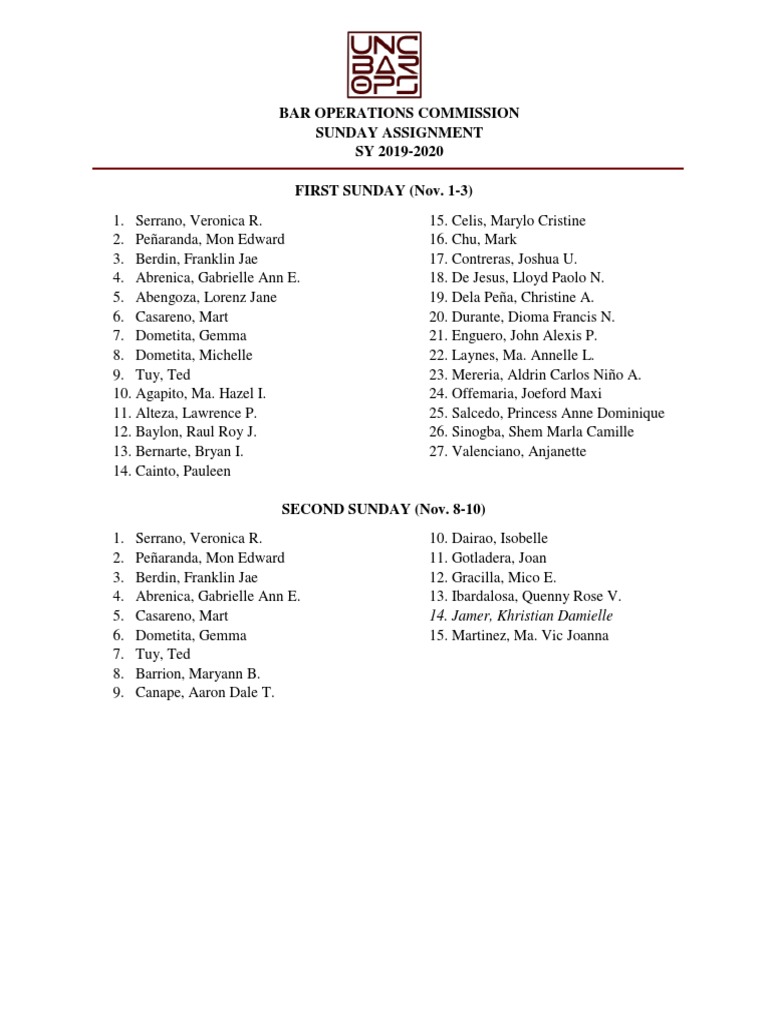 1. Serrano, Veronica R. 15. Celis, Marylo Cristine