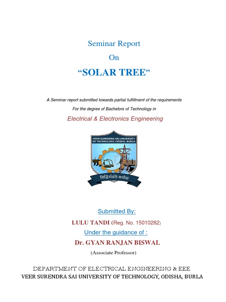 “SOLAR TREE” for the partial fulfillment of Bachelor’s of