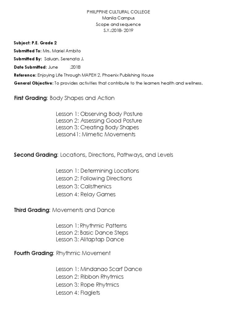 General Objective: To provides concepts, principles and varied activities toward achieving physical