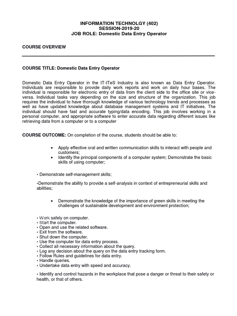 Domestic Data Entry Operator in the IT-ITeS Industry is also known as Data Entry Operator.