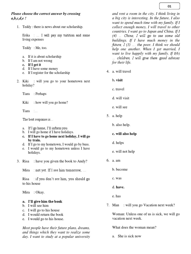 Please choose the correct answer by crossing 4. Man : will you go Vacation next week?