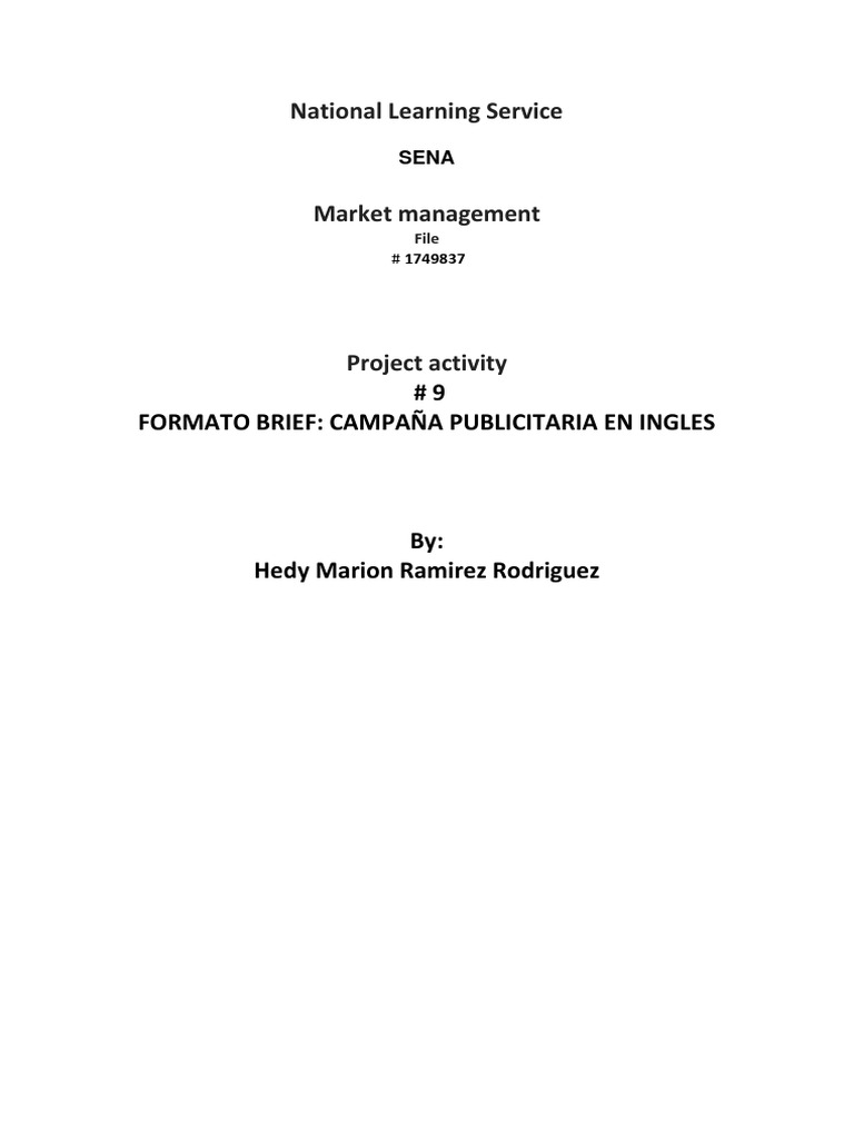 FORMATO BRIEF: CAMPAÑA PUBLICITARIA EN INGLES
