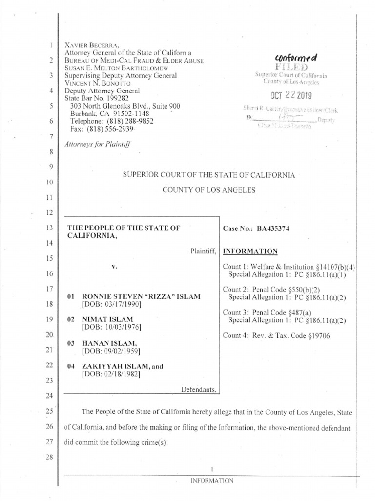 Counts and penalties facing Hanan Islam and three of her children ahead of a November 21, 2019 scheduled trial
