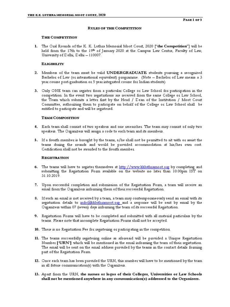 1. The Oral Rounds of the K. K. Luthra Memorial Moot Court, 2020 [“the Competition”] will be