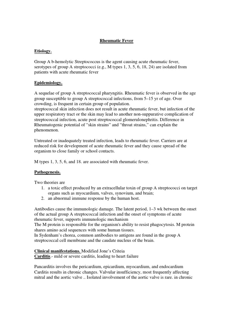 diagnosis of rheumatic fever should not be considered in patients if there is no evidence