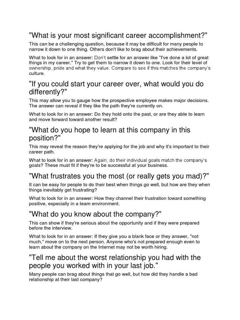 things in my career." Try to get them to narrow it down to one. Look for their level of
