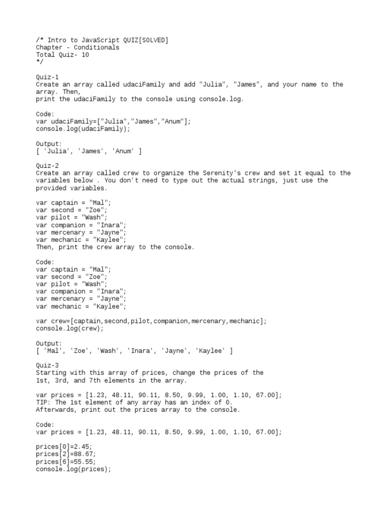 /* Intro to JavaScript QUIZ[SOLVED]