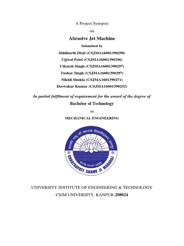 calculations. This abrasive jet machining project is used for cutting any integrated shapes on