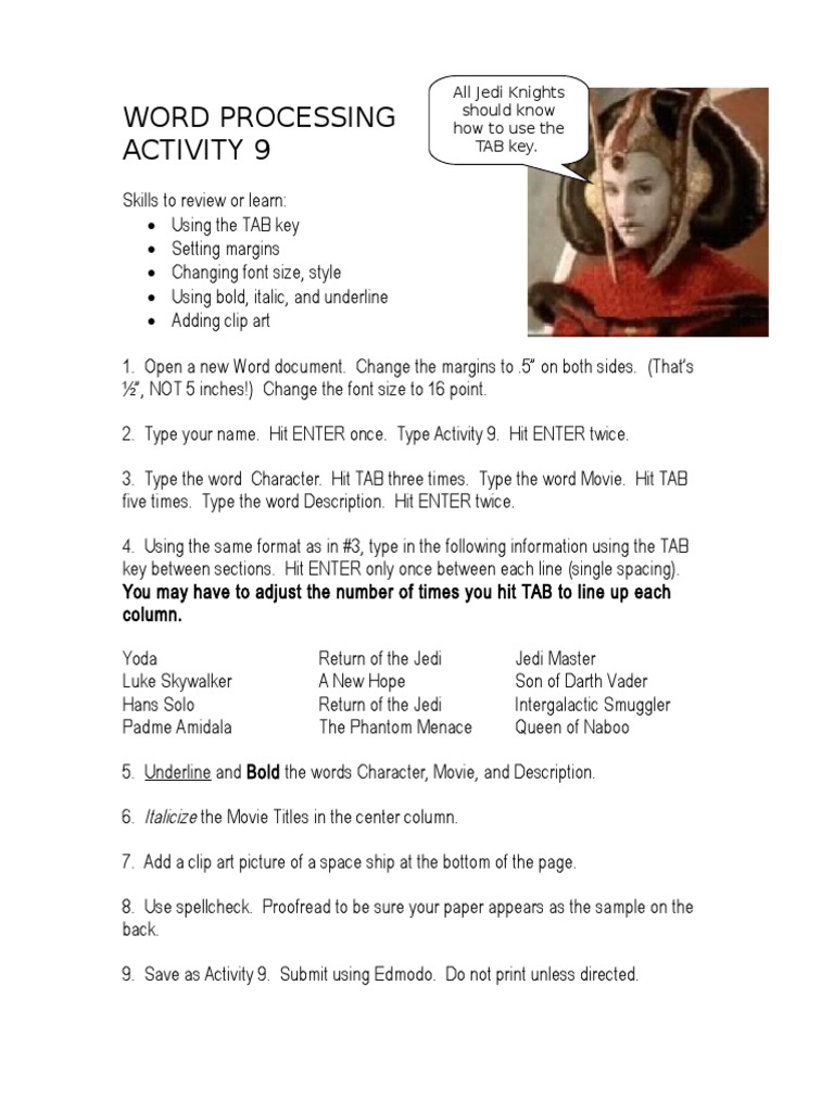 9. Save as Activity 9. Submit using Edmodo. Do not print unless directed.