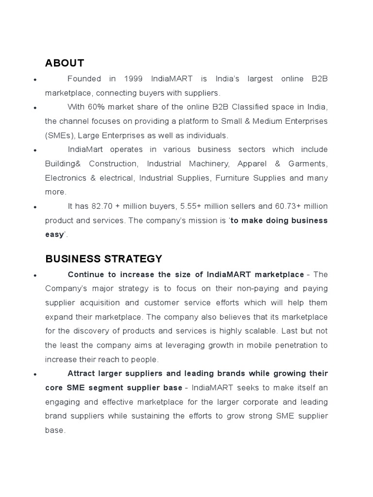 suppliers, which includes Indian SMEs and large businesses. IndiaMart
