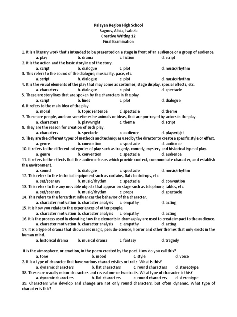 16. It is the process used in elevating how the elements in drama/play are used to create impact to the audience.
