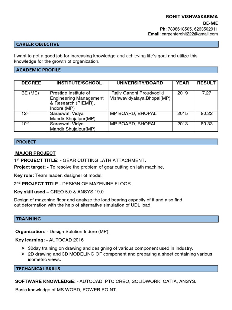 SOFTWARE KNOWLEDGE: - AUTOCAD, PTC CREO, SOLIDWORK, CATIA, ANSYS.