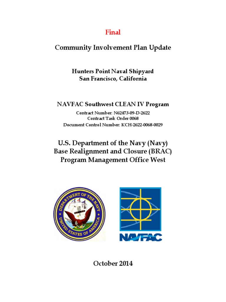 Final Hunters Point Naval Shipyard Community Involvement Plan Update