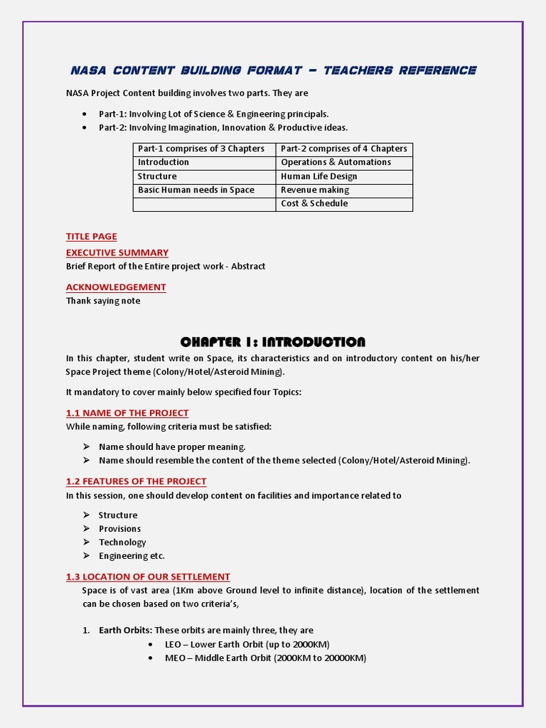 NASA Project Content building involves two parts. They are