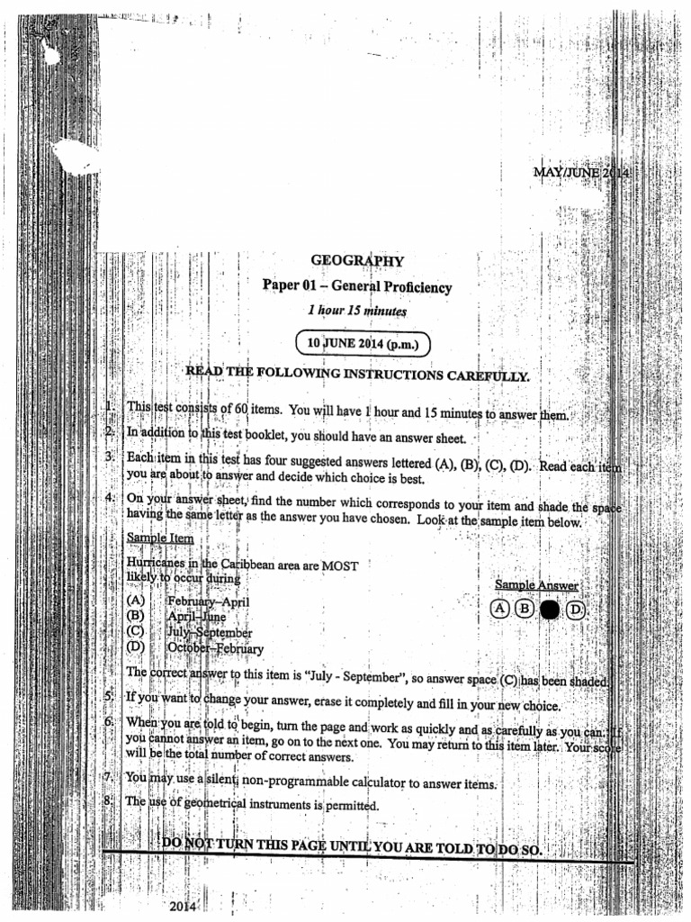 CSEC- Geography- Paper 01 - 2014