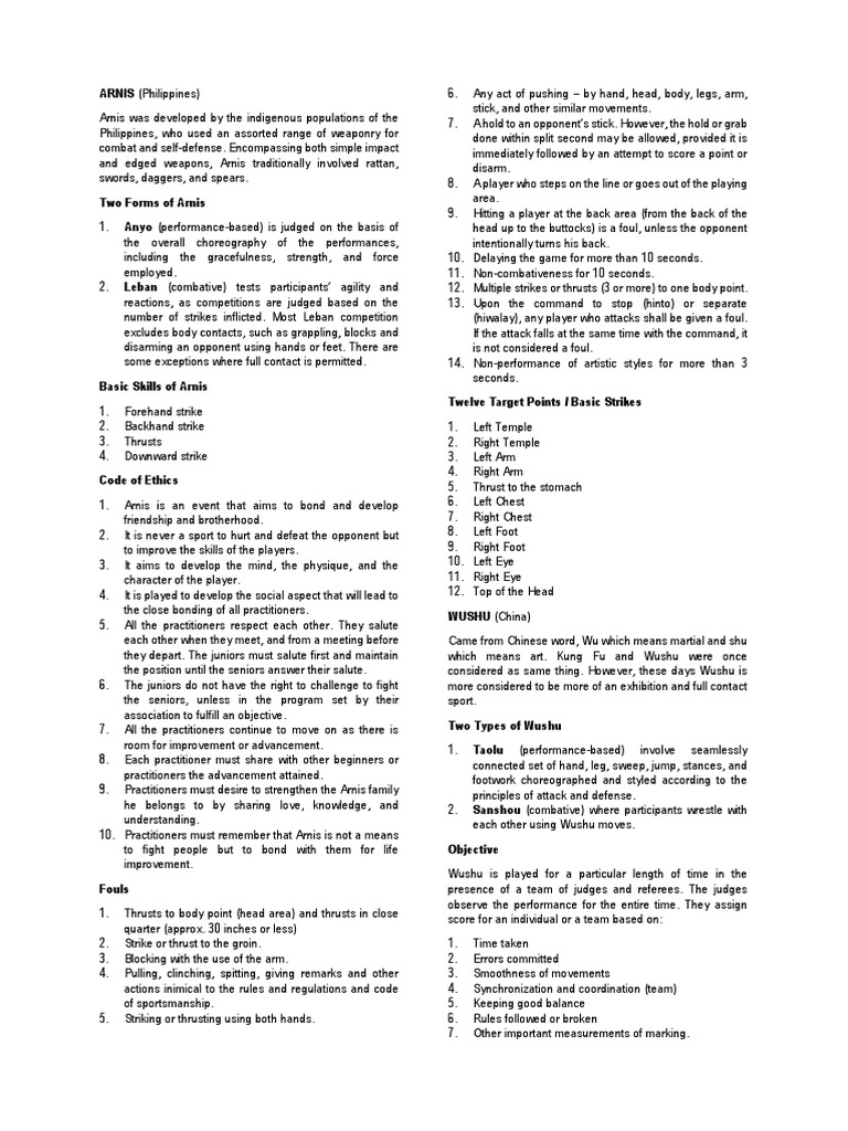 1. Arnis is an event that aims to bond and develop 6. Left Chest