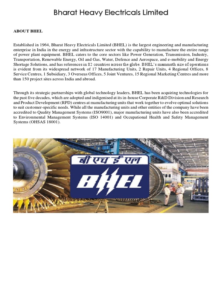Established in 1964, Bharat Heavy Electricals Limited (BHEL) is the largest engineering and manufacturing