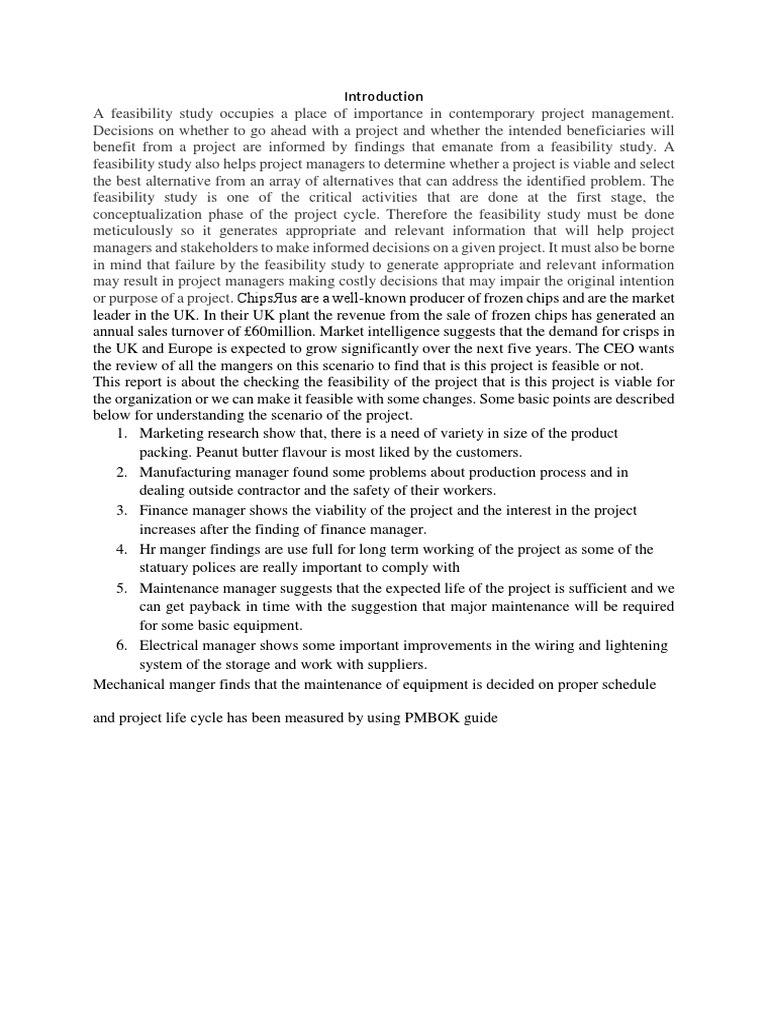 benefit from a project are informed by findings that emanate from a feasibility study. A