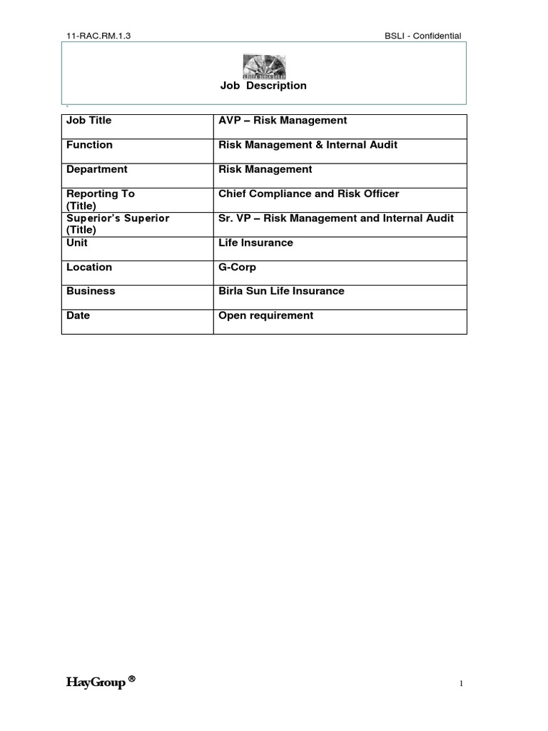 Job Title AVP – Risk Management