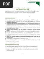 Senior Manager – ERM: To implement the Enterprise risk management framework and