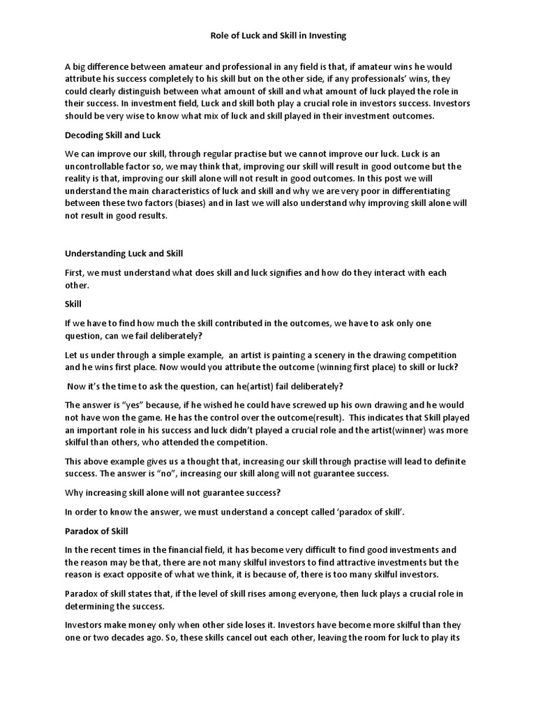their success. In investment field, Luck and skill both play a crucial role in investors success. Investors
