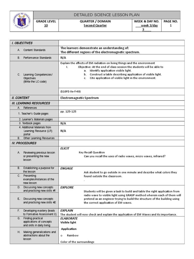 GRADE LEVEL QUARTER / DOMAIN WEEK & DAY NO. PAGE NO.