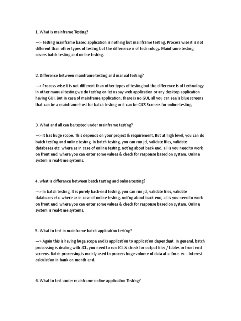 —> Testing mainframe based application is nothing but mainframe testing. Process wise it is not