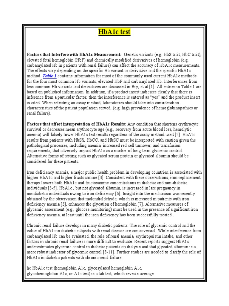 carbamylated Hb in patients with renal failure) can affect the accuracy of HbA1c measurements.