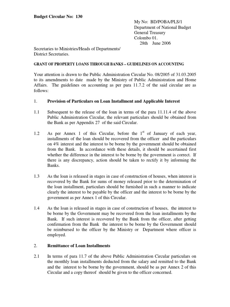 4.3 In accordance with the other guidelines of this Circular such loan installments