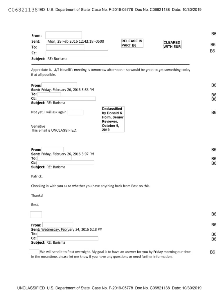 February 2016 State Department memos released under FOIA showing efforts by Karen Tramontano to seek a meeting about Burisma corruption allegations.