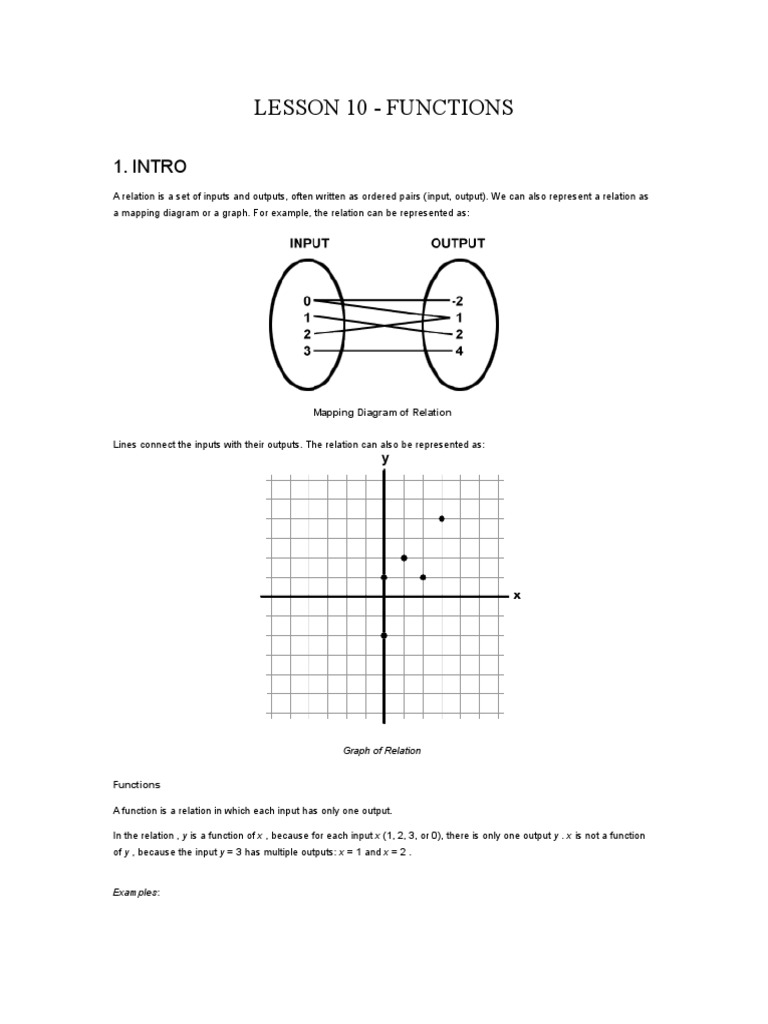 A relation is a set of inputs and outputs, often written as ordered pairs (input, output). We can also represent a relation as