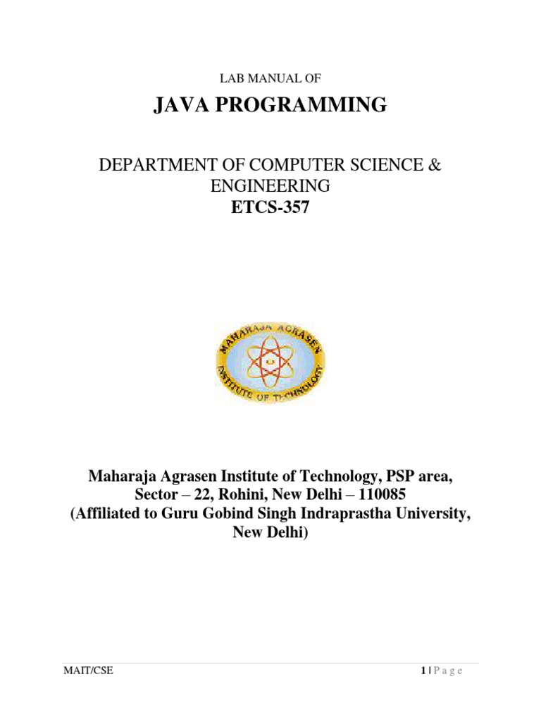 Java which are taken into details according to the syllabus prescribed by G.G.S.I.P.U for this lab