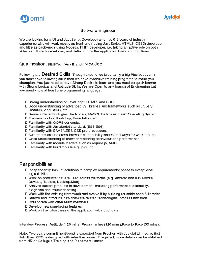 Note: Two years commitment/bond is expected from Fresher with Justdial Limited as first