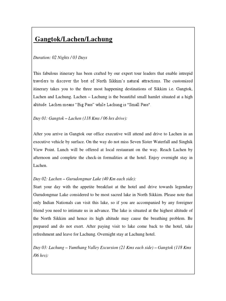 travelers to discover the best of North Sikkim’s natural attractions. The customized