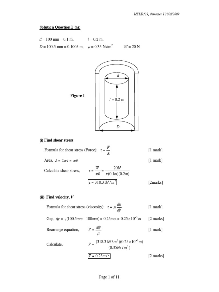 (i) Find shear stress