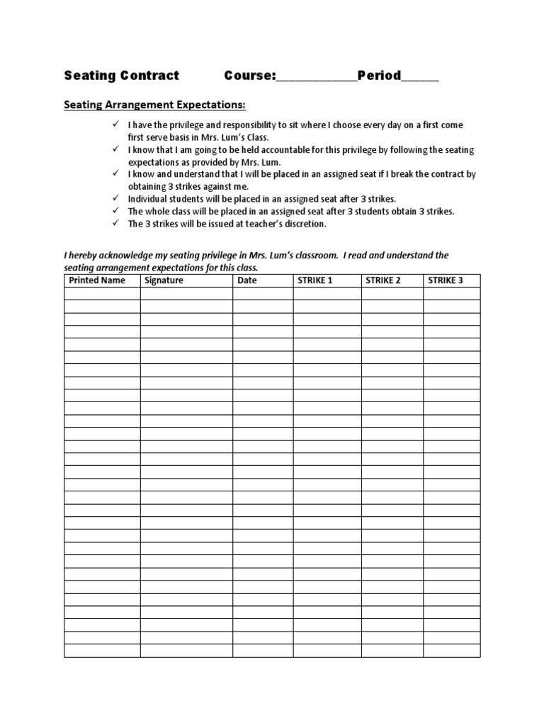 I hereby acknowledge my seating privilege in Mrs. Lum’s classroom. I read and understand the