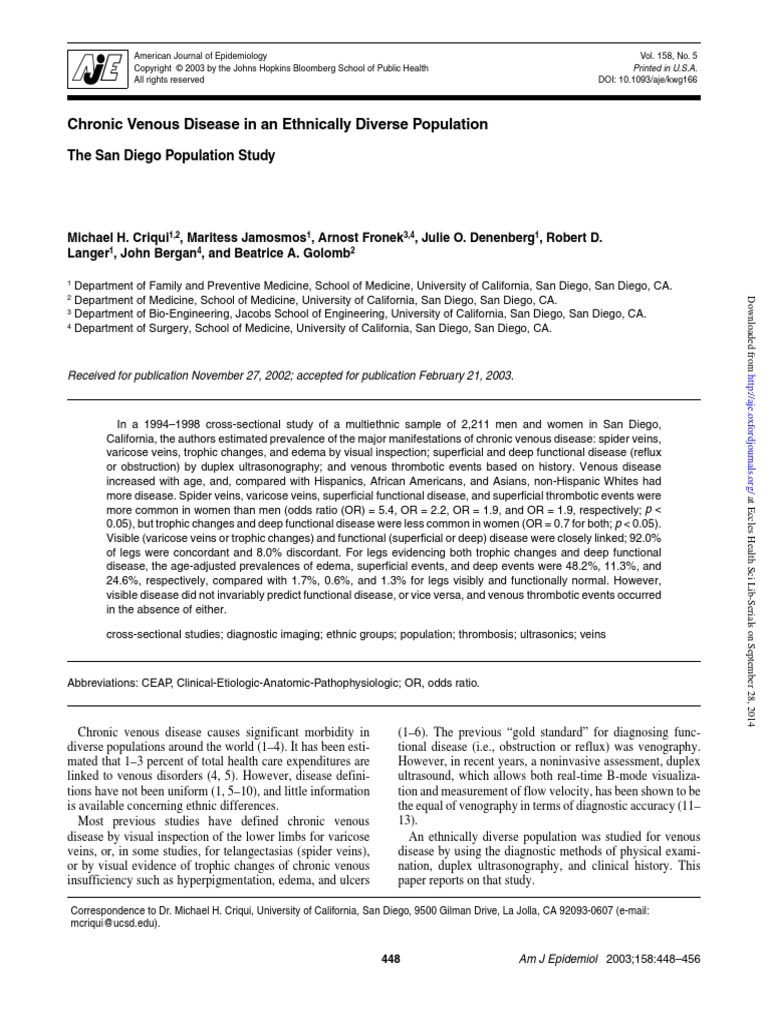 Chronic Venous Disease in An Ethnically Diverse Population: The San Diego Population Study