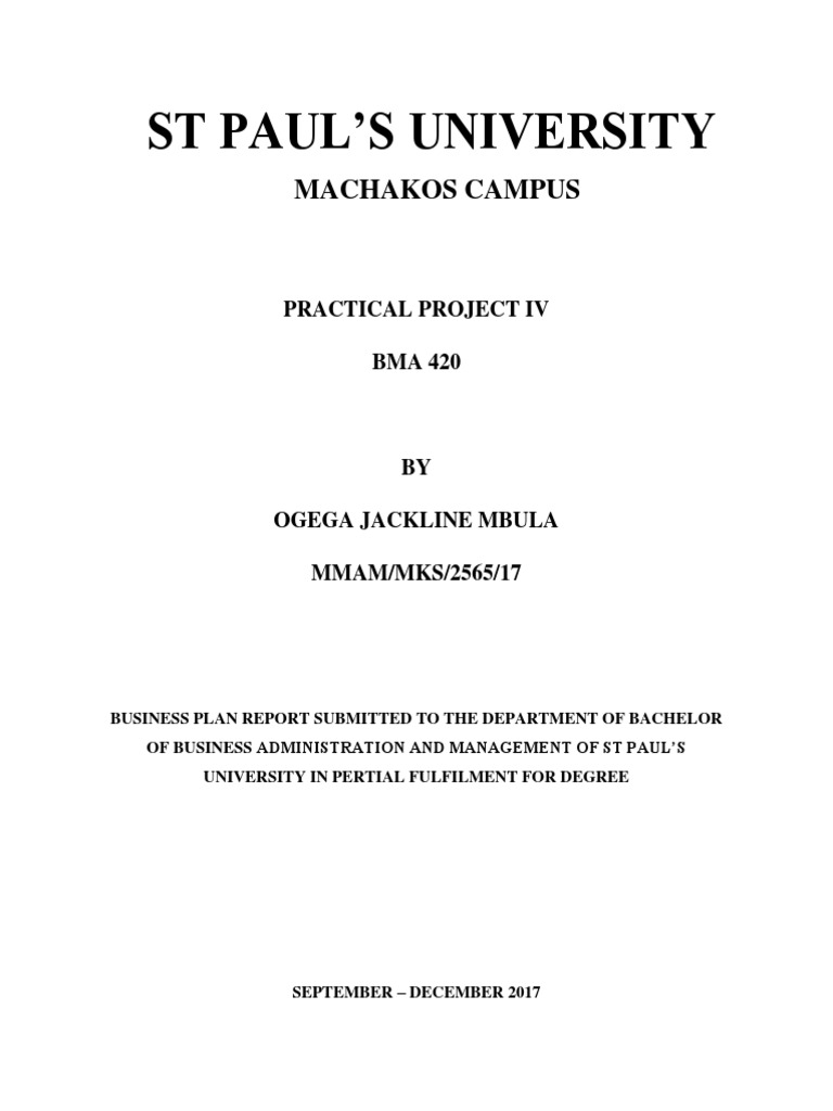 I Ogega Jackline Mbula declare this work as my original business project and is not a